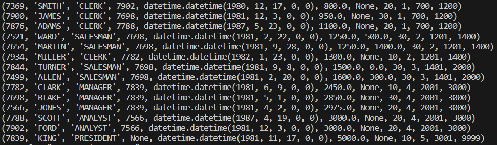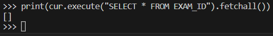 print(cur.execute("SELECT * FROM EXAM_ID").fetchall())