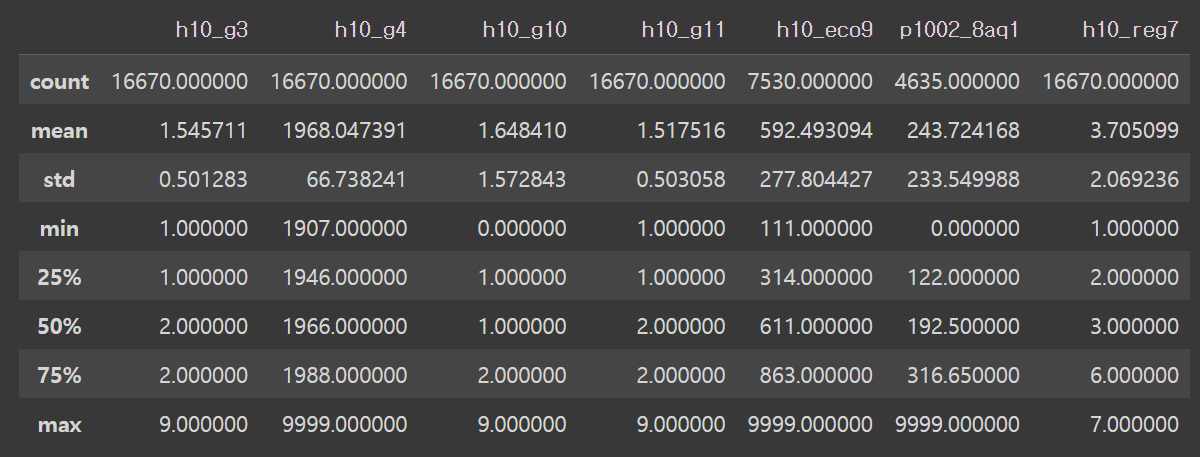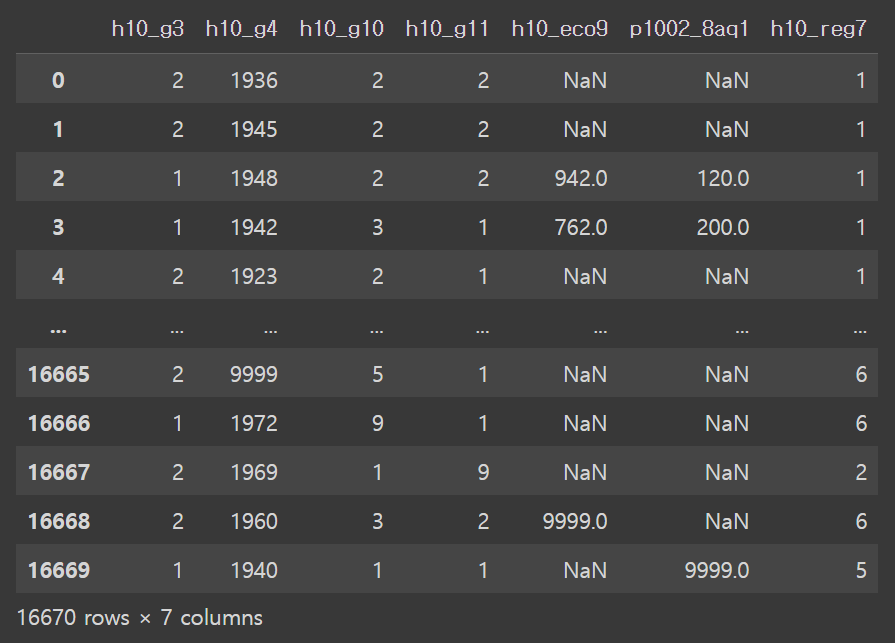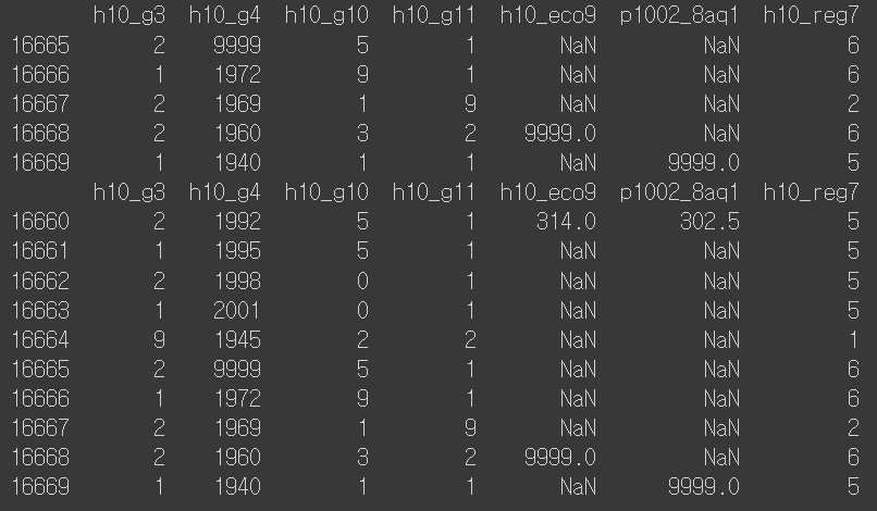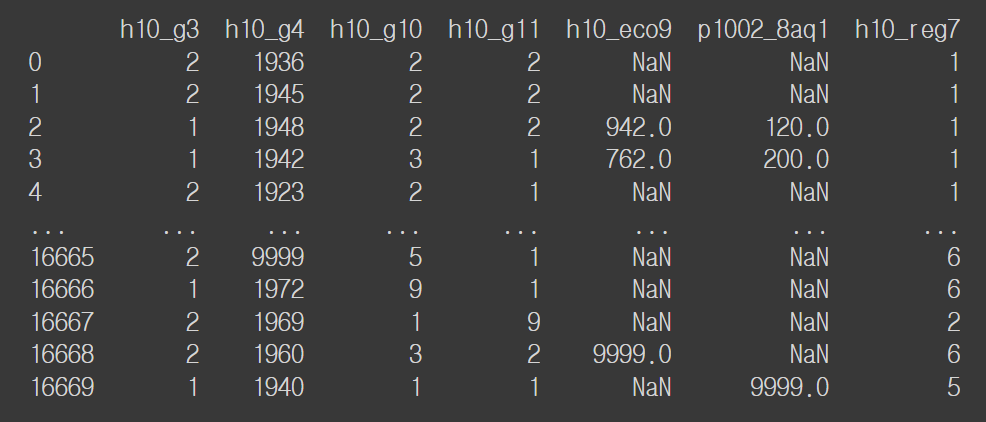 # 9 => 모름/미응답 등으로 이상치 => NaN