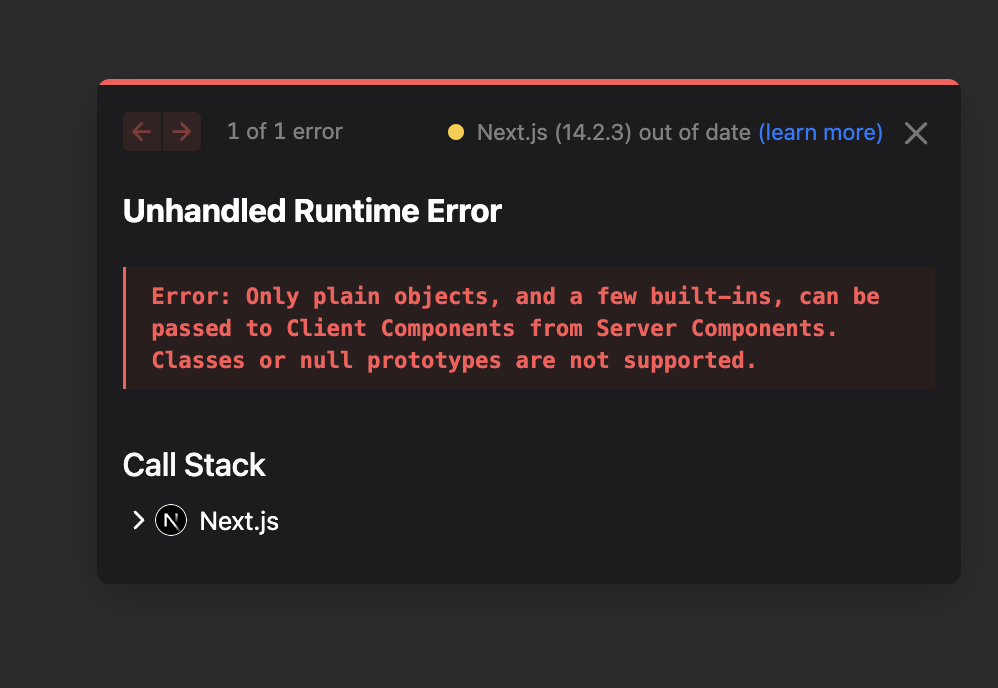 서버 컴포넌트에서 클라이언트 컴포넌트로 프롭스를 전달하면서 생기는 문제라고 한다.