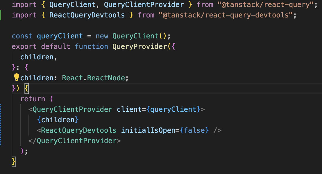 코드를 보면 현재 QueryClientProvider가 서버사이드 컴포넌트로 작성되어 있다.