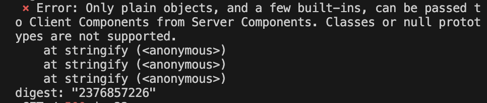 Error: Only plain objects, and a few built-ins, can be passed to Client Components from Server Components. Classes or null prototypes are not supported.