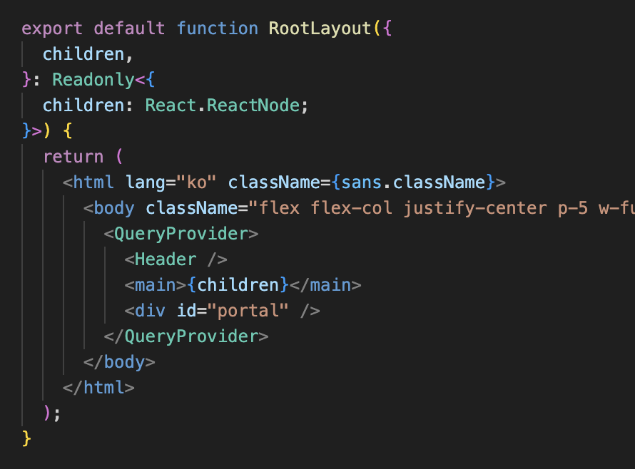 QueryProvider를 만들어 RootLayout에 적용하면 런타임 에러가 발생함