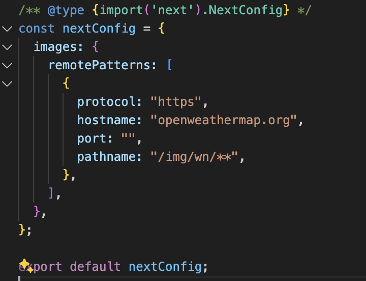 Next.js 애플리케이션에서 WeatherIcon 컴포넌트를 사용하여 외부 도메인의 이미지를 로드하고 있음.
