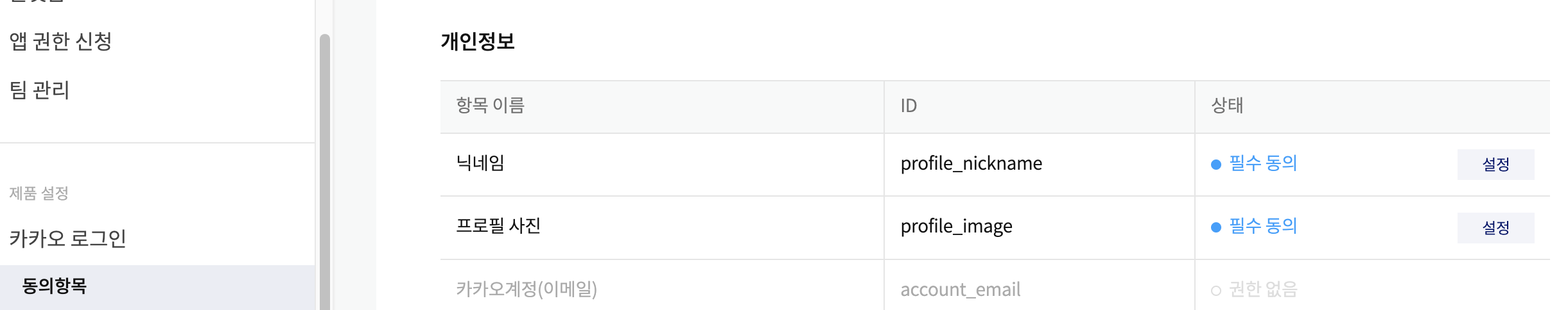 동의항목에서 사용할 항목들 필수 동의로 설정. 끝.