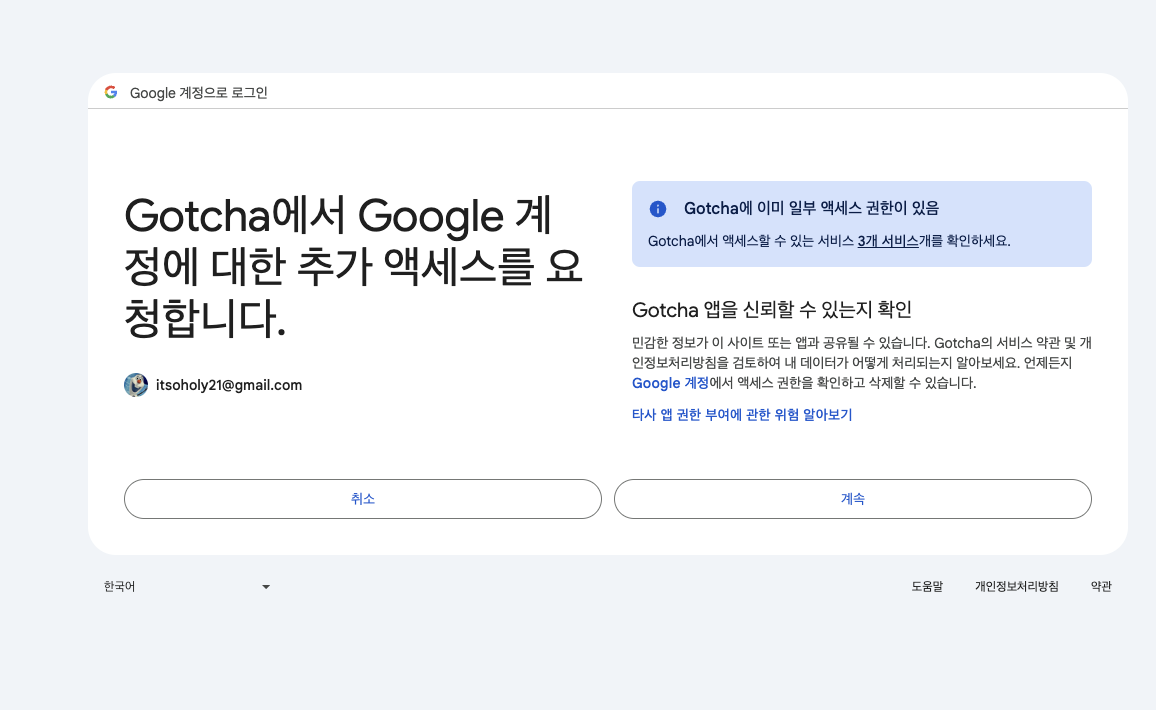 클릭시 문제가 없는경우 계정 선택후 로그인이 실행된다.