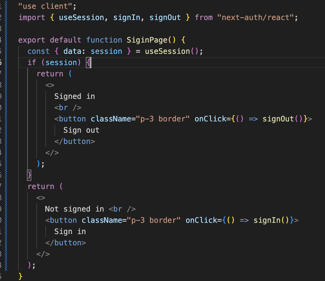 로그인이 안된 경우에는 버튼 onClick 핸들러에 signIn(), 되어있는 경우 signOut()을 적용해준다.