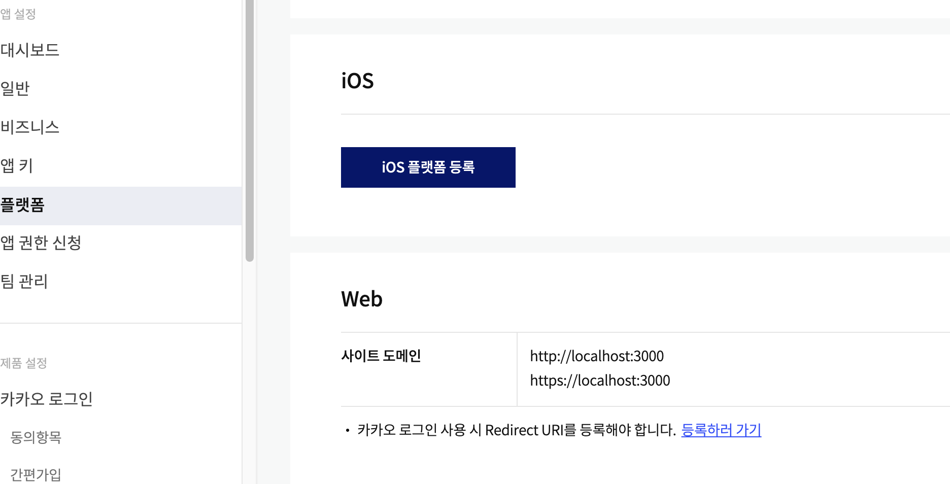 Redirect URI을 동록해준다. 등록하러가기 버튼 클릭
