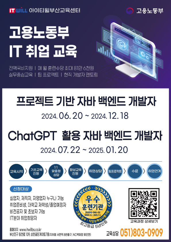 ★ 5년 인증 우수훈련기관 아이티윌 부산교육센터