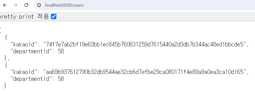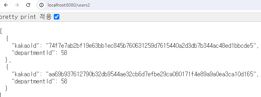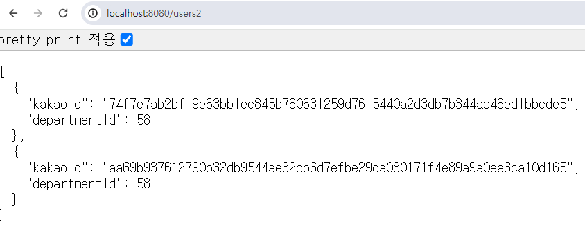 -> Json 객체로 Serialize되어 반환됨