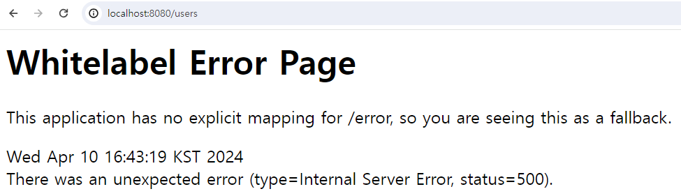 -> @ResponseBody 어노테이션을 붙이지 않아서 데이터가 반환이 안됨