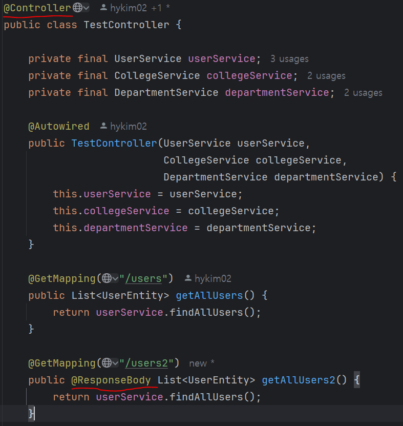 => 즉, 두 개의 어노테이션의 가장 큰 차이점은 HTTP Response Body가 생성되는 방식임을 알 수 있다 !!