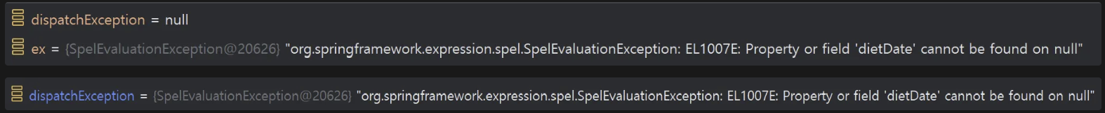 (하지만, SpEL 오류의 근본적인 이유와 dietDate 속성값은 null이 아닌데 null로 인식되는 이유를 모르겠음)