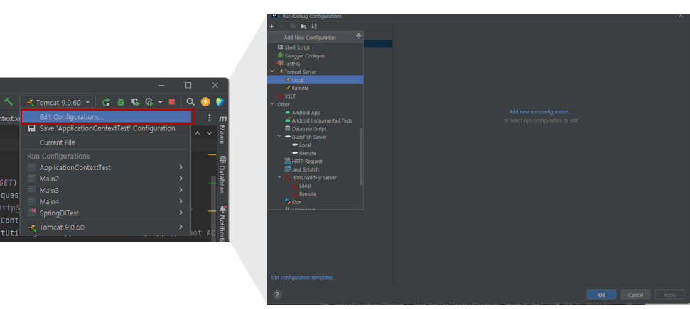 ➊ Tomcat▾ → Edit Configuations.. → + → Tomcat Server/Local