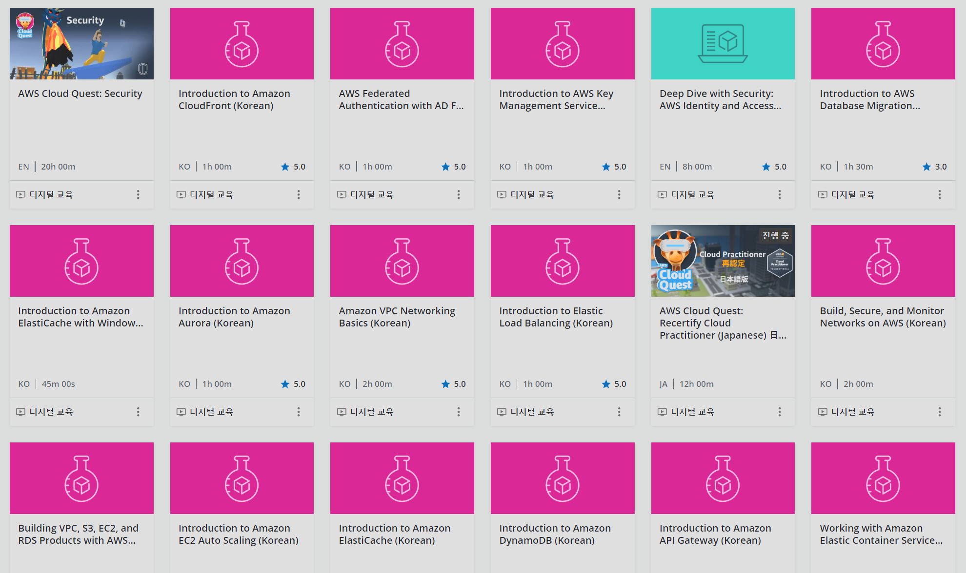 ・온디맨드 코스: 600개 이상의 다양한 온디맨드 코스와 학습 경로를 통해 클라우드 기술을 자유롭게 배울 수 있습니다.