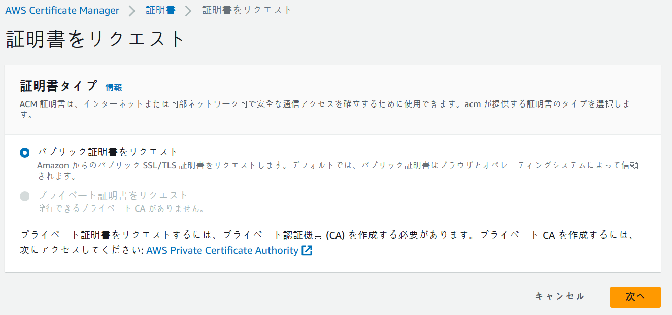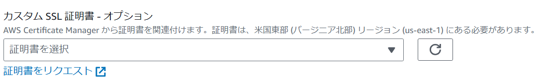 注意点:CloudFrontサービスのSSL証明書を作成するため