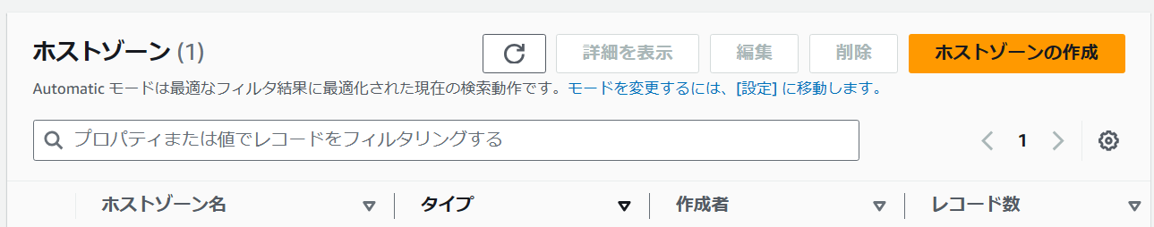 Route53のサービスに移動してroute53-> host zoneに移動しホストゾーンの作成をクリック