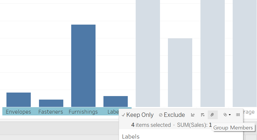 1) visualization using labels (막대 하단의 라벨 클릭)