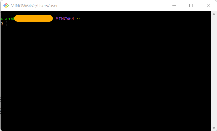 Git Bash를 처음 열면, 유저이름@컴퓨터이름이 가장 면저 표시된다.