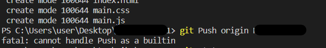 git push 했을 때 "cannot handle Push as a builtin" 메시지는 p를 대문자P로 입력했을 때 나타난다.
