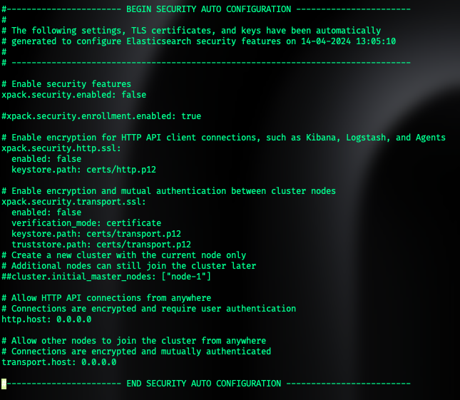 'vi /etc/elasticsearch/elasticsearch.yml'