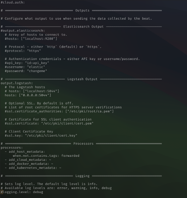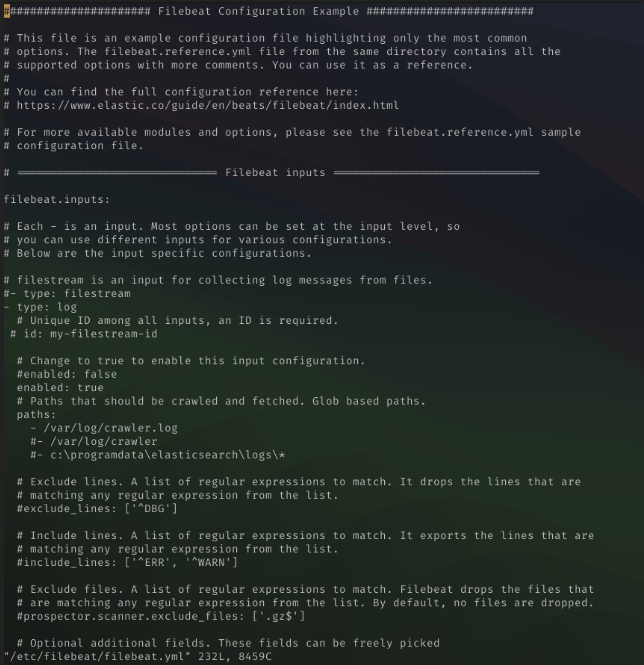 vi /etc/filebeat/filebeat.yml