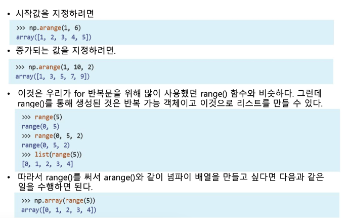 arr1 = np.arange(10) # 0 ~ 9까지 숫자를 numpy배열에 표현이 되어짐.