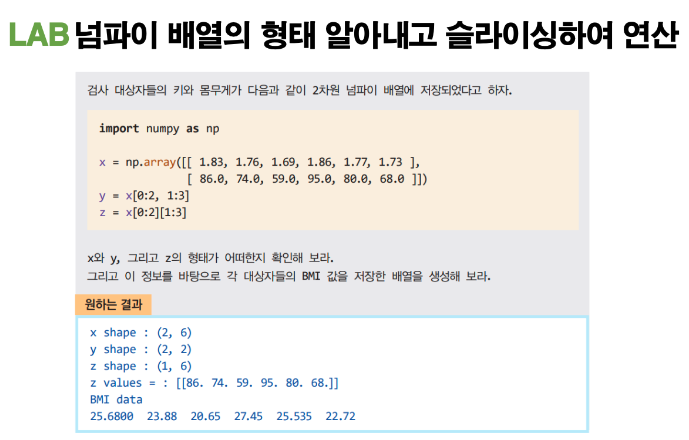 # numpy를 이용하여 array 정의.