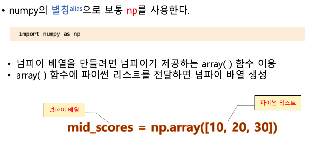 먼저, numpy를 이용하기 위해서는 numpy를 import해야 함.