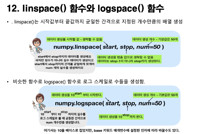 → numpy에서 array를 정의할 때 사용되는 함수들.