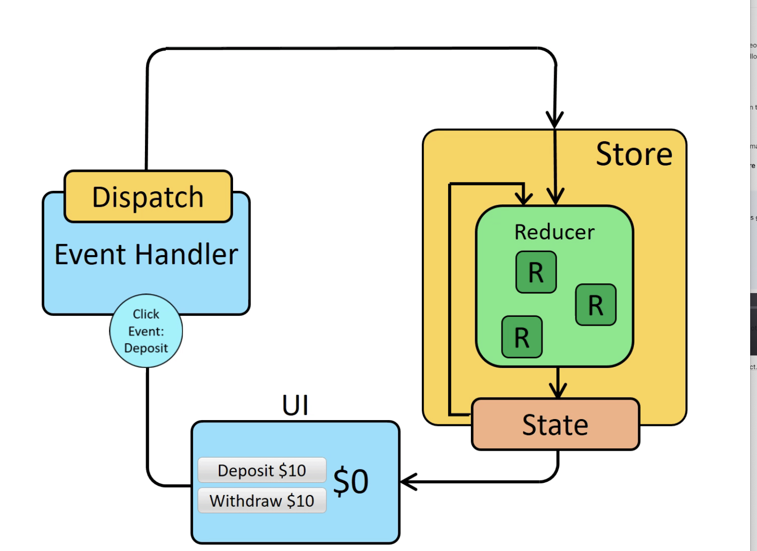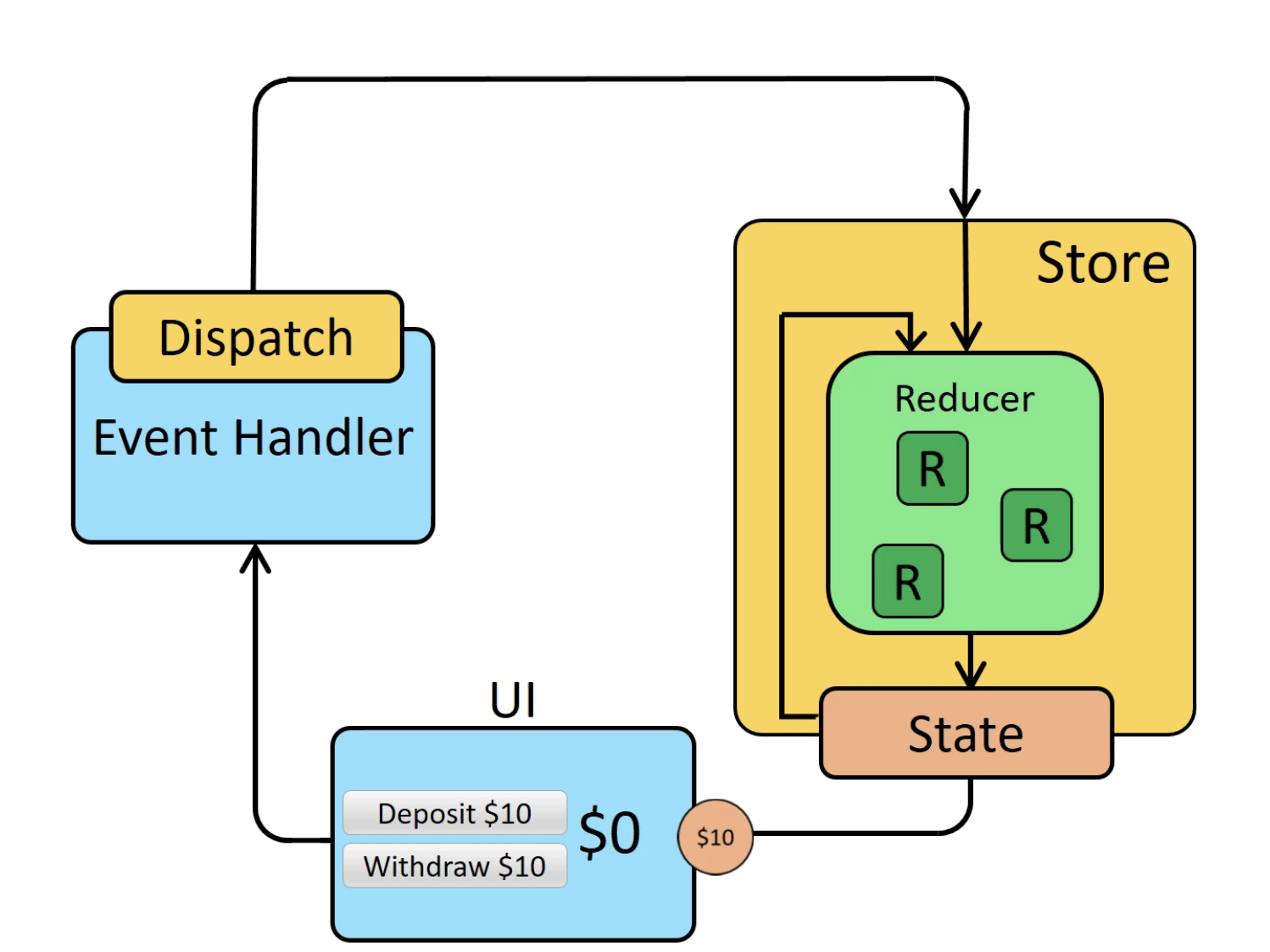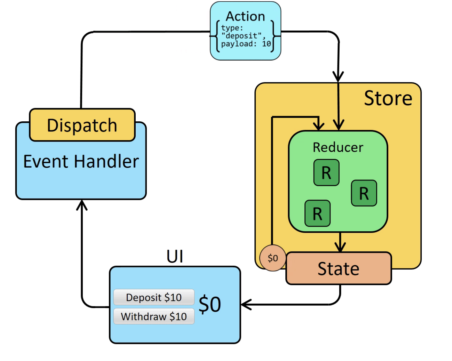 UI -> dispatch -> store