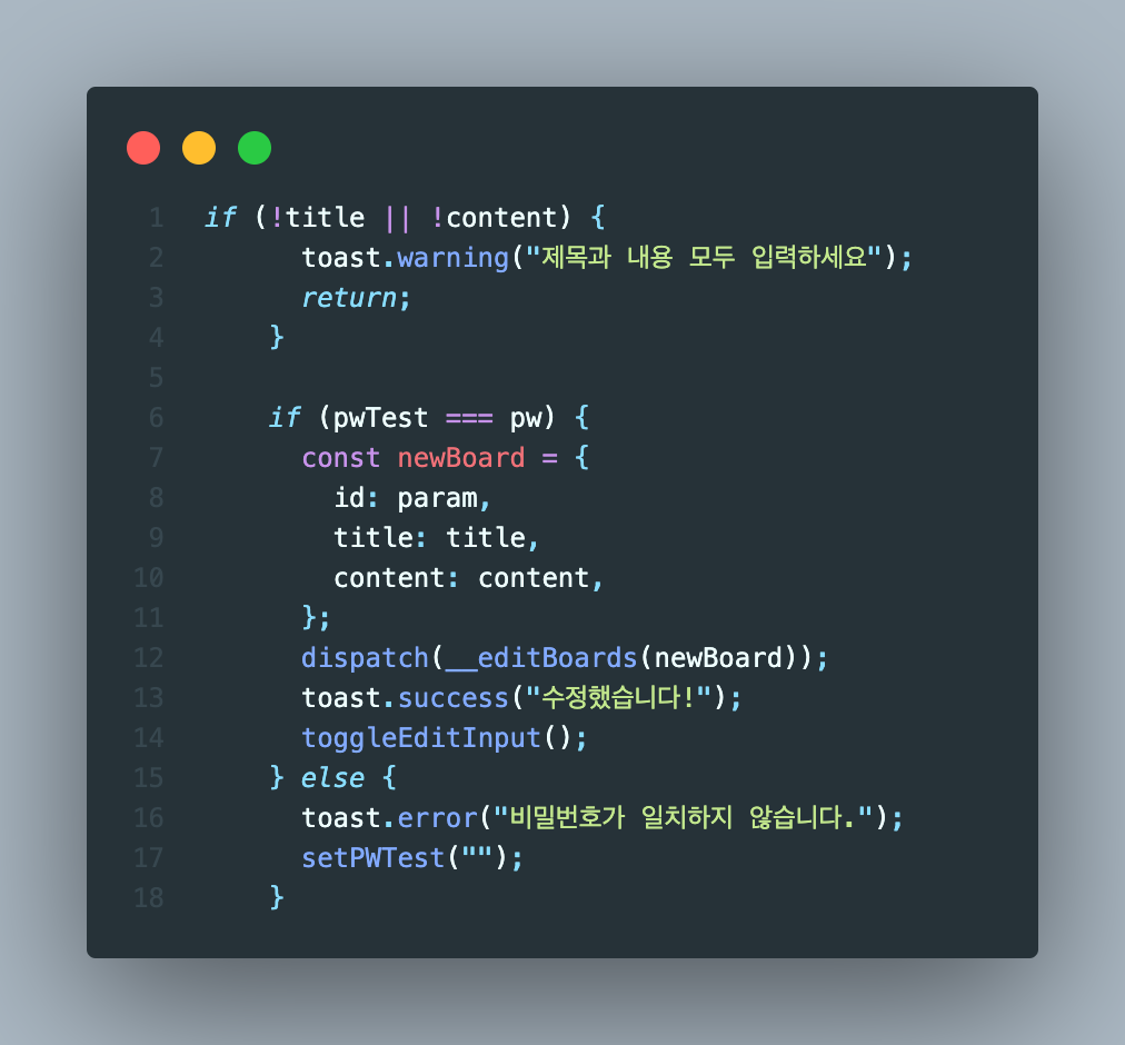 우리 조에서는 팀원분이 tostify를 사용하셔서 이런 귀여운 팝업창이 뜨며 시간이 지나면 사라진다.