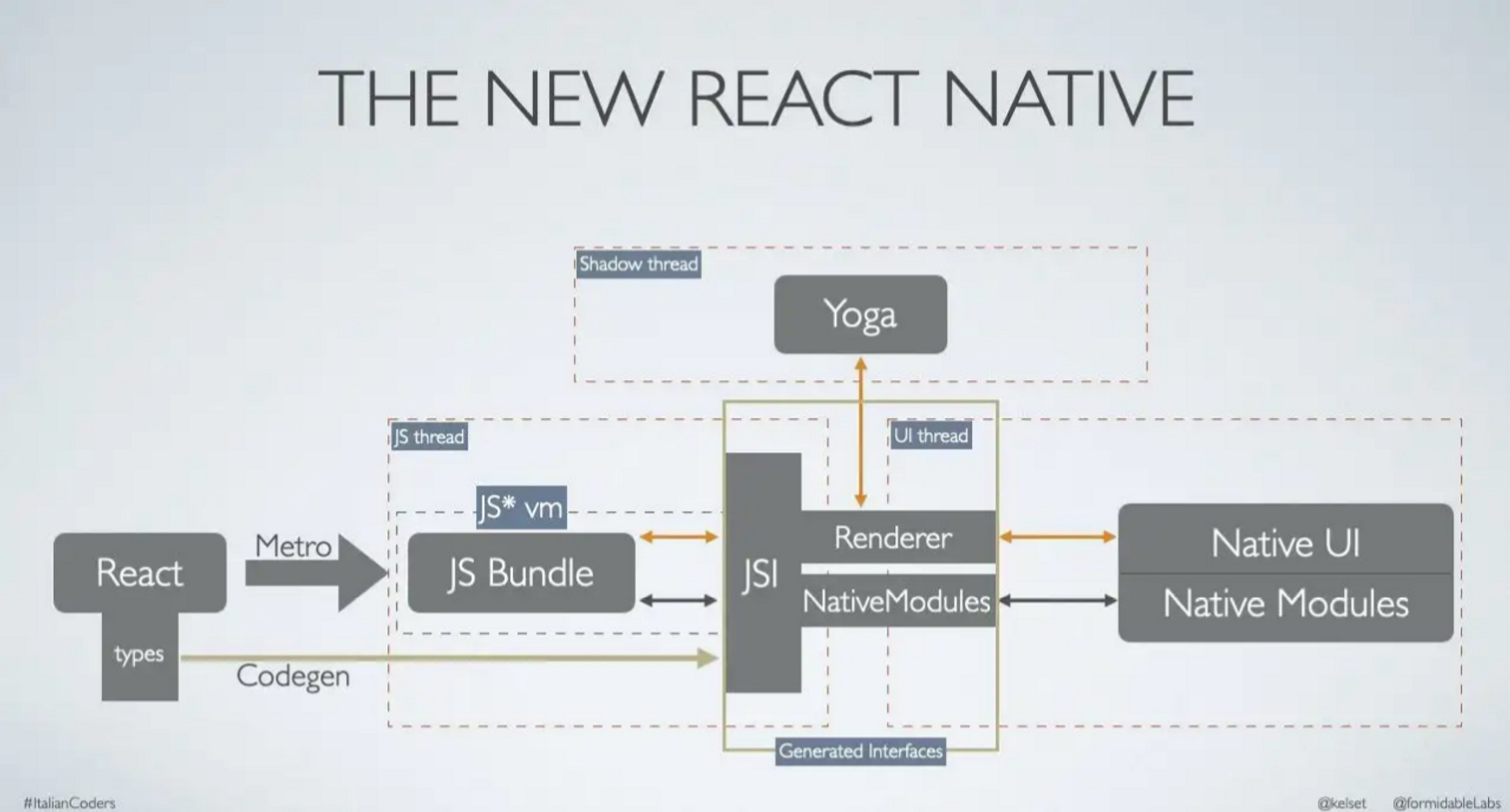 JacaScript Interface 는 모든 스레드 간의 완전한 상호 운용성을 허용한다. 공동 소유권의 개념을 사용하면 JavaScript 코드가 JS 스레드에서 직접 네이티브 측과 통신할 수 있고 전달 메세지를 JSON으로 직렬화 할 필요가 없어 브리지의 모든 혼잡 및 비동기 문제를 제거할 수 있다.