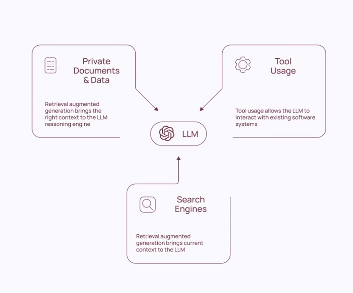 • 기존 LLM이 학습한 데이터 외에도 실시간 검색 및 외부 데이터베이스 연동 가능