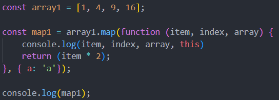 : arr.map(callback(currentValue[, index[, array]])[, thisArg])