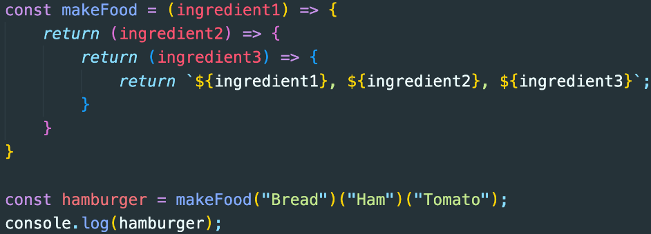 역시나 커링은 하나씩 호출하게 된다면 함수를 리턴하고, ingredient2, ingredient3 필요하단걸 표현