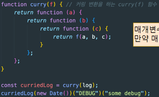 log 함수 호출 전 커링 변환해주는 curry함수에서 new Date()는 고정으로 나머지 매개변수에 변동 한다면