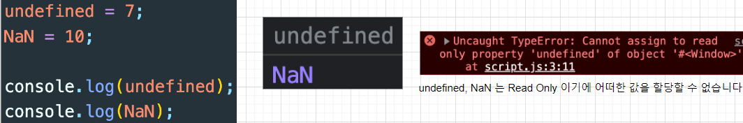 Read Only 특성을 가진 undefined와 NaN에 값을 할당한 경우