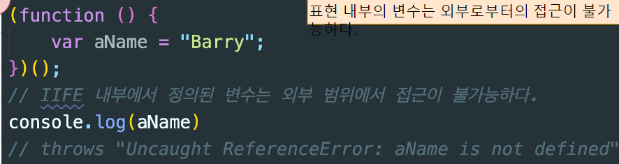 IIFE 내부 안으로 다른 변수들의 접근 방지