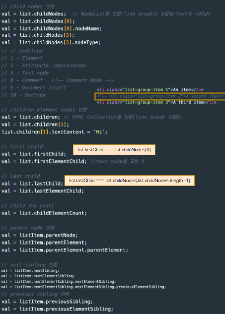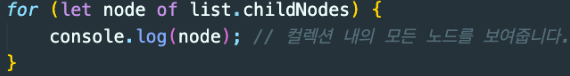- childNodes : 해당 노드에 대한 자식 노드들 반환