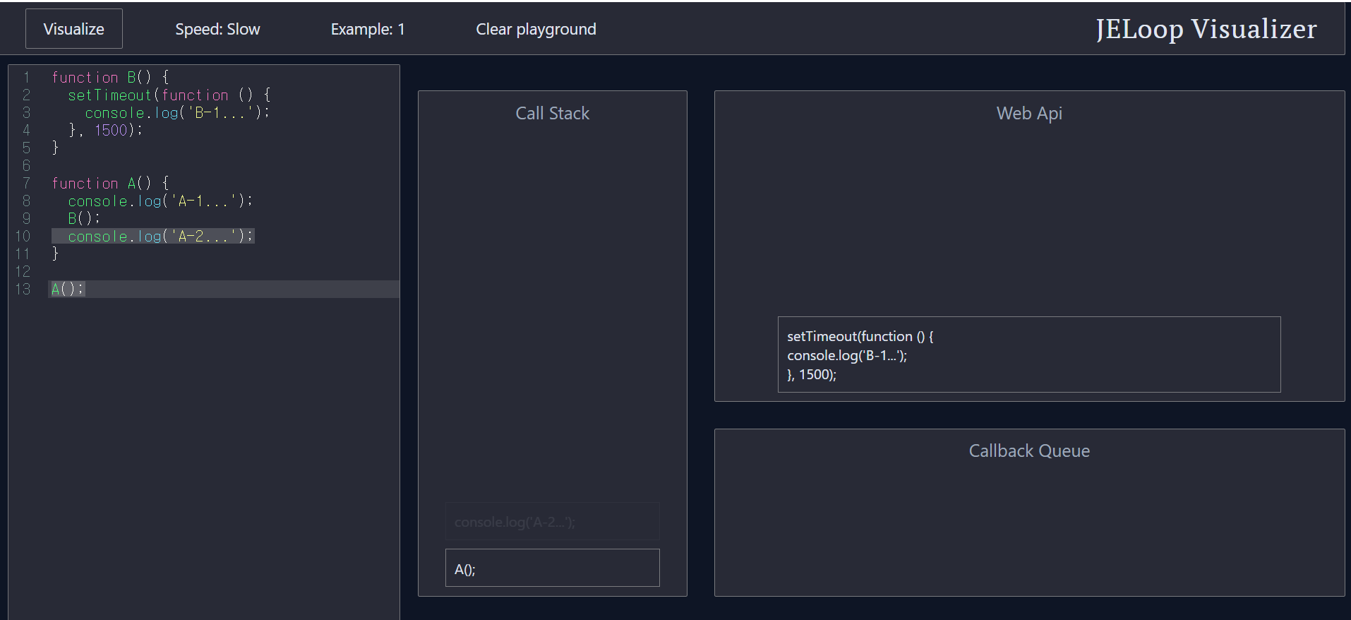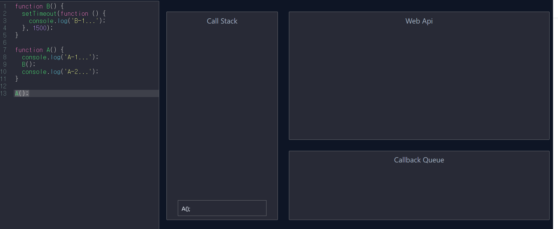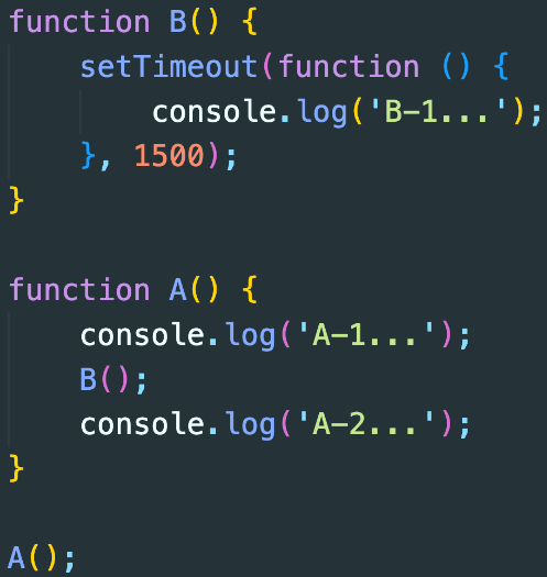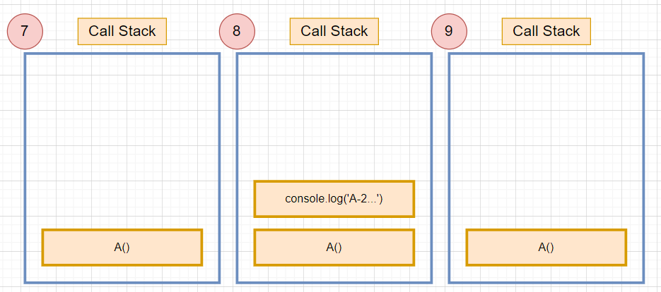 2: A() 내 console.log('A-1...') 실행 구문으로 쌓임