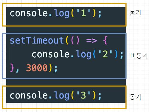 콘솔에 1을 출력 후 setTimeout()으로 3000ms 기다리는 동안 3출력 후 2 출력하는 순서 원리