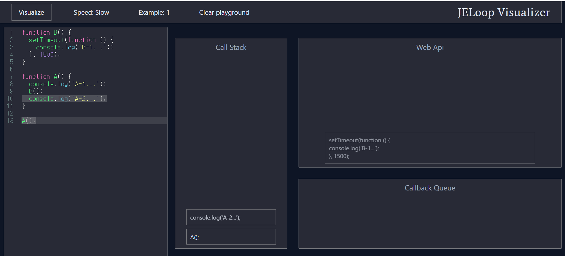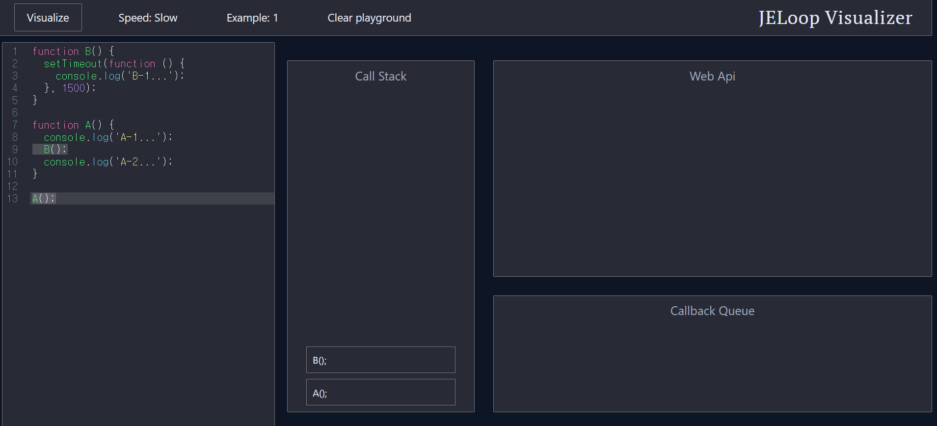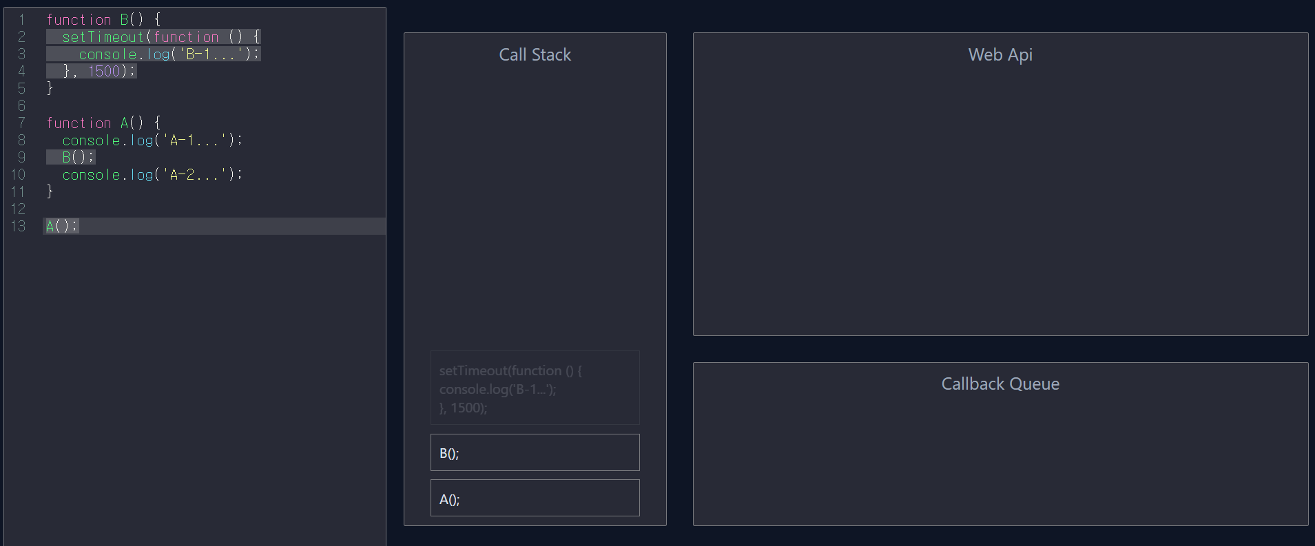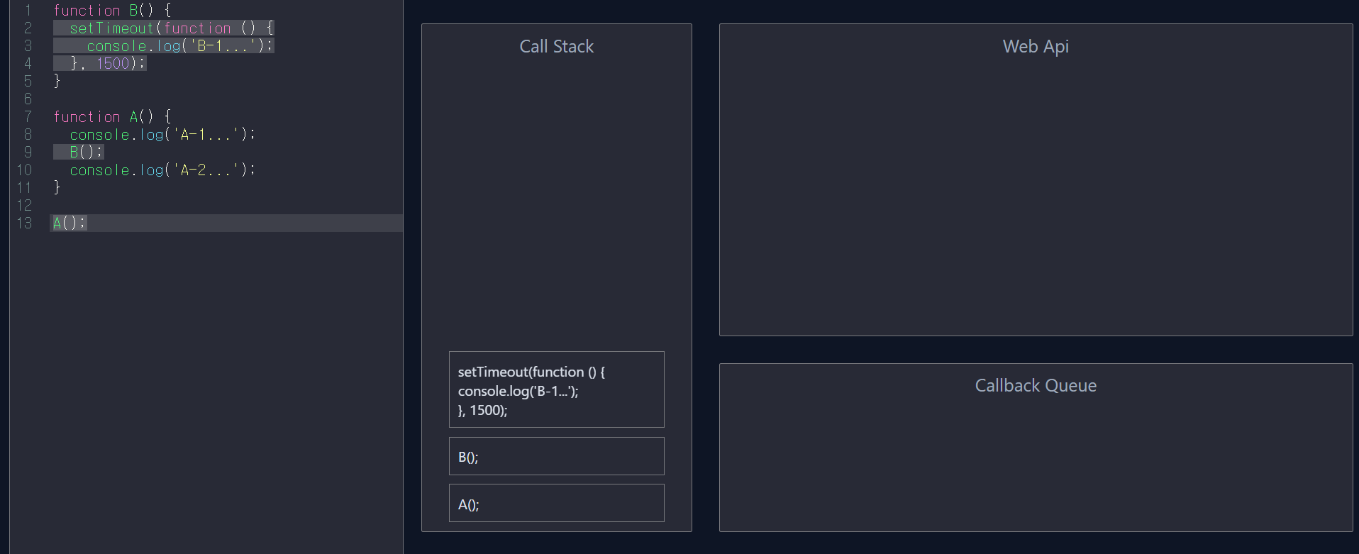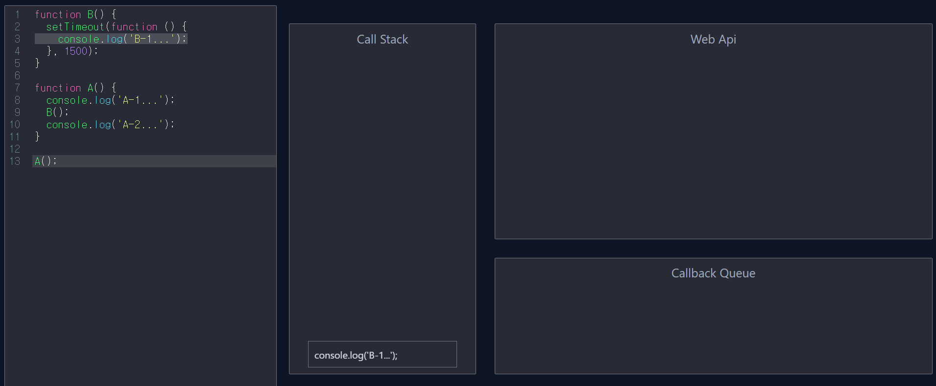 11: 1500ms 지난 시점에 console.log('B-1...')구문 쌓이게됨