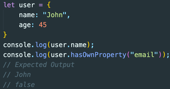 hasOwnProperty() 속성 즉 객체에 email이란 속성 갖고 있는지 묻고 있다