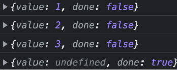 길이에 벗어나면 undefined과 함께 done: true 반환