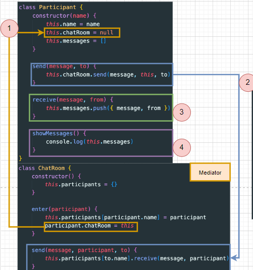 2. chatRoom이라는 Mediator가 받아서 상대방에게 전달