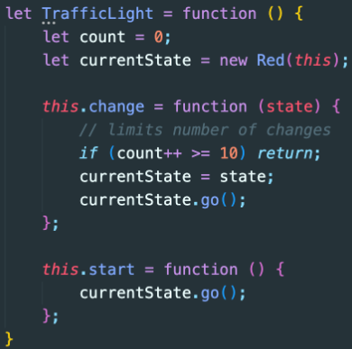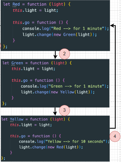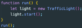 빨간 불에 대한 정의 후 TrafficLight객체의 change함수를 참조하여 초록불 객체 상태로 변경 되도록 한다