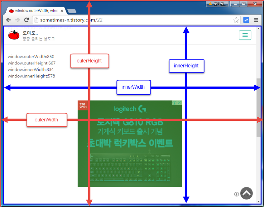outerWidth : 전체 창의 너비