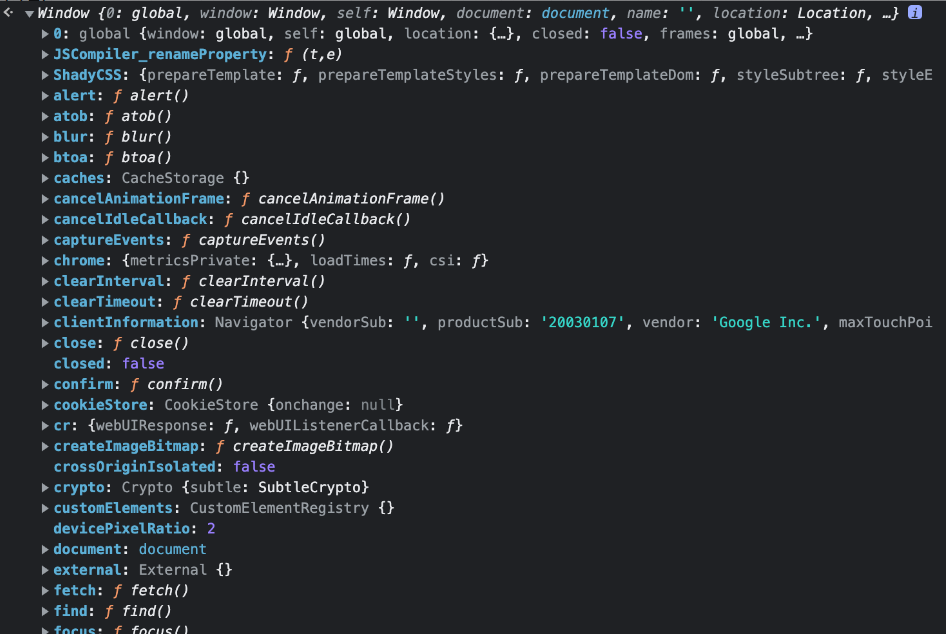 console에 window라고 입력하면 해당 함수들을 확인 가능