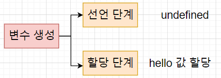 => 즉, 선언 단계만 먼저 시작으로 undefined가 반환 후 hello 할당