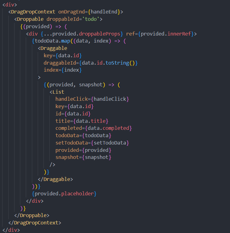 DragDropContext으로 드래그앤드롭 하려는 부분 래핑